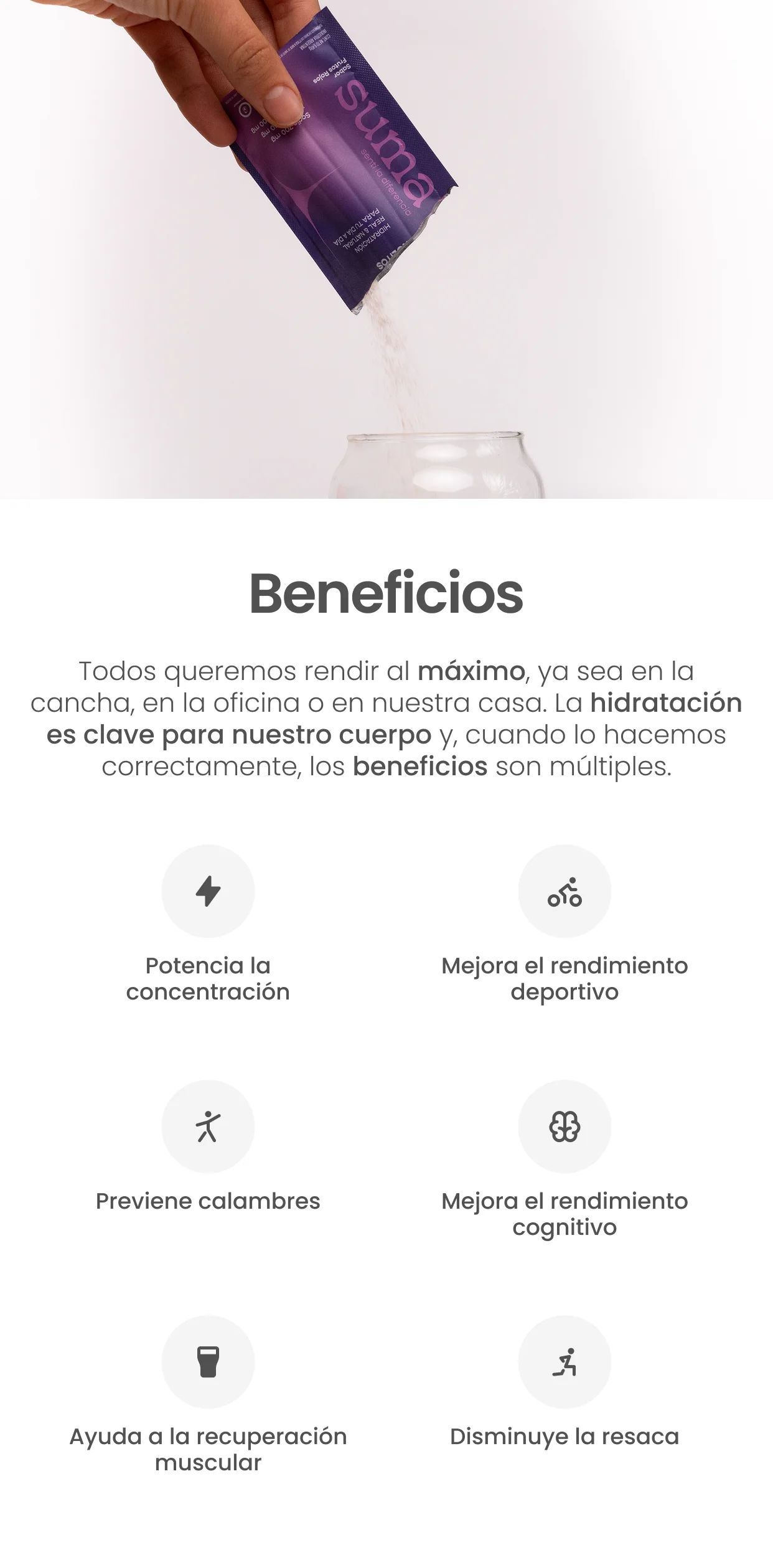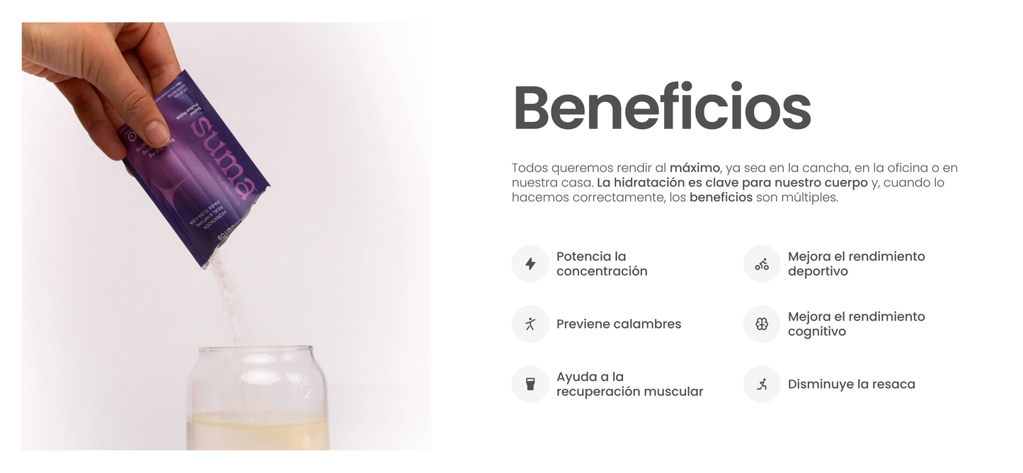 El haber comenzado a tomar los electrolitos de SUMA fue un antes y un después en mi hidratación. Hizo que me volviera más consciente y pueda enfocarme como corresponde.